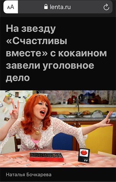 YB очень любит издание "Лента.ру" за четкие и понятные заголовки. Правда, в данном случае не очень понятно, кто такой Кокаин и почему на него завели дело вместе со звездой "Счастливы вместе". А, ясно, это просто следаки завели дело вместе с кокаином. Обдолбались и завели дело - теперь все понятно!