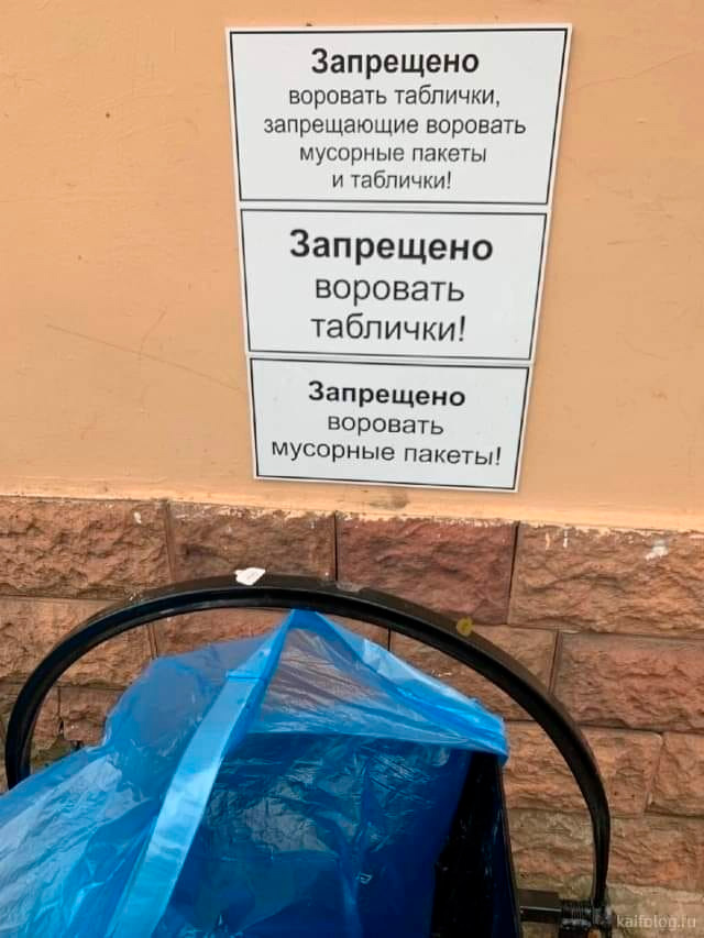 Запрещено воровать таблички, которые запрещают воровать таблички и мусорные пакеты и таблички, которые запрещают воровать таблички, и таблички, которые запрещают воровать мусорные пакеты