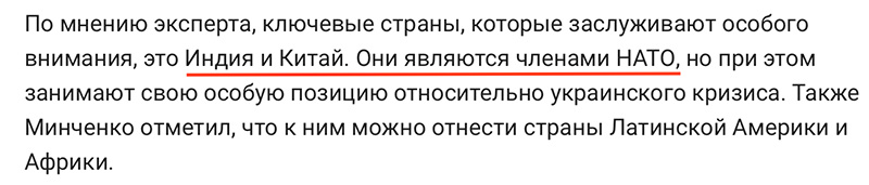 Большой политолог Минченко, вздыхает Ian, зажигает в "Газете.ру". Индия и Китай у него - члены НАТО. Ну, какой политолог, такая и "политология".