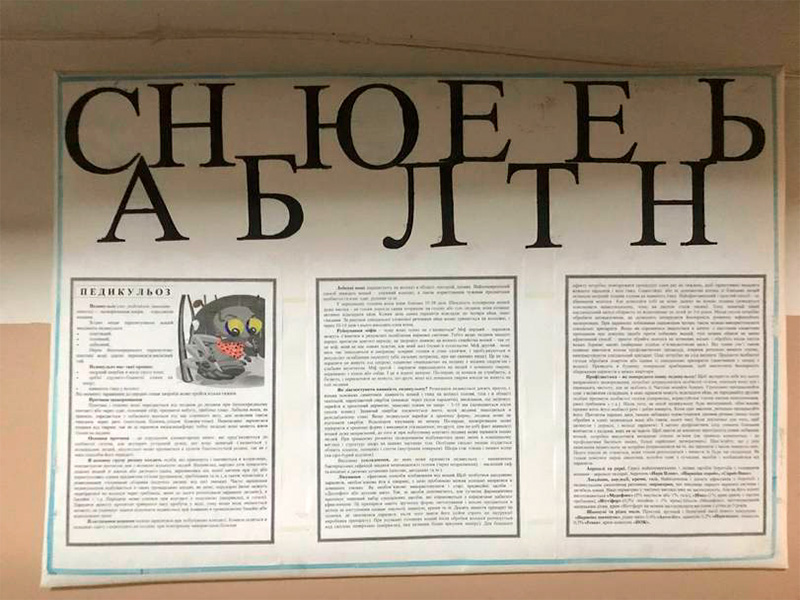 Поначалу, конечно, считает Гена Крокодил, в этой белиберде вообще ничего понять невозможно, но потом все-таки до тебя доходит, что оформитель просто нашел где-то буквы размером в три раза больше, чем надо и проявил народную смекалку. В том смысле, что налепил абы как.