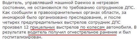 Ему еще повезло, замечает Денис. Сотрудник ППС мог начать прицельно палить по колесам, и, если у него в этот момент был ПМС, результаты были бы плачевные.
