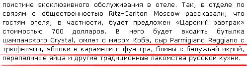 Поручик Ронин настоятельно рекомендует всем любителям настоящей русской кухни - отель Ritz-Carlton, где этой кухни - хоть завались!