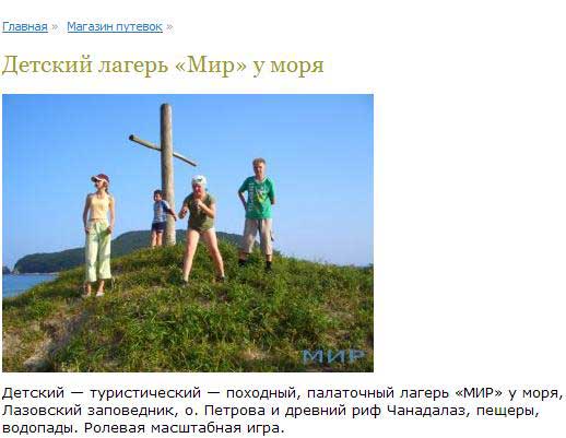 Trb рекламирует очаровательный детский летний лагерь "Мир". Вот только не забудьте дать с собой сыночку терновый веночек, а то вон у них там какие интересные игры...