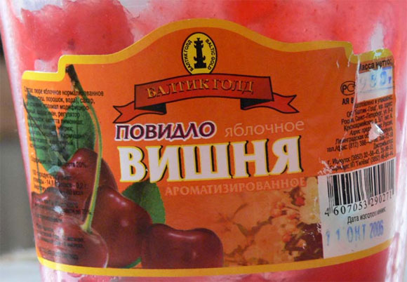Такую картину, конечно, без бутылки пережить невозможно. Но чтобы не алкоголить, взамен можно слопать яблочного повидла под названием "Вишня". Состав: свинина, баранина, помидоры, лук.