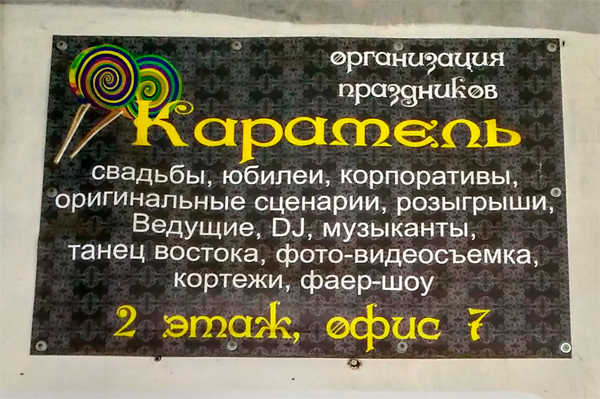 Организация праздников под названием "Каратель" - это красиво, считает Павел. А если это все-таки "Карамель", то им срочно нужно кастрировать художника, который это сотворил.