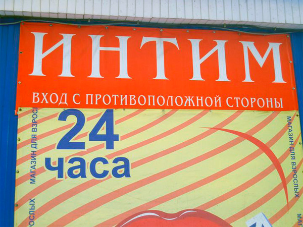 Да бывает, вздыхает Ян. Вон тут у "Интима" тоже вход с противоположной стороны. 24 часа.