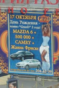 Игорь рекламирует казино Grand. Там можно выиграть "Мазду-6", полмиллиона рублей, "Тойоту-Камри", ну или Жанну Фриске, на худой конец.