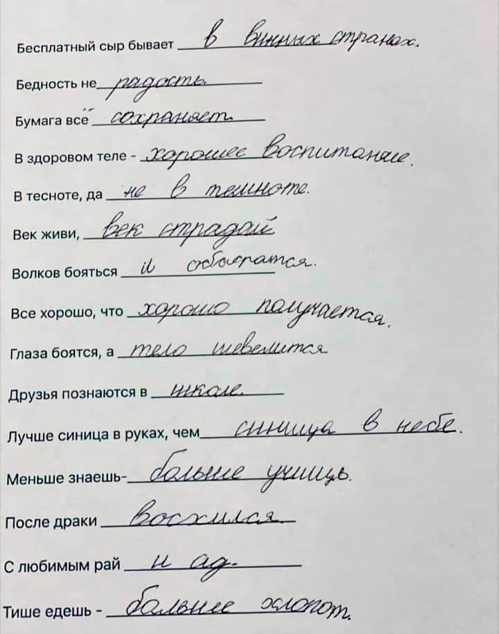 Ответы ребенка-реалиста порадовали, но подозреваю, что взрослый надиктовал.
