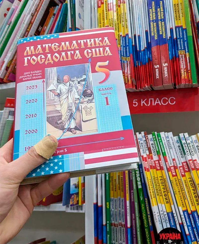 Госдолг США для 5 класса - Обложка фейкового учебника создана на основе настоящего учебного пособия по математике издательства «Мнемозина» для 5 класса. Год издания — 2019. Автор — Наум Виленкин.