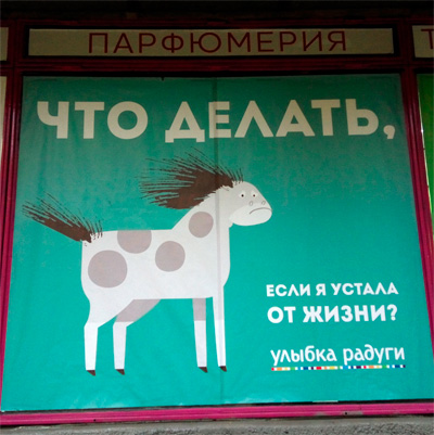 Александр с помощью этой милой рекламы рассказал нам о мотивации. Что делать, если ты - грустная страшная лошадь? Ответ простой: нужно стать страшной лошадью в бигуди.