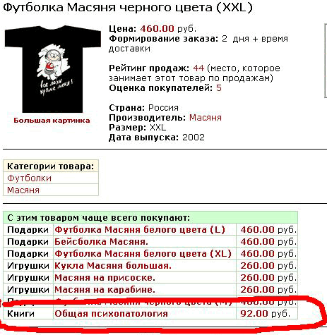 "Футболочку с Масяней не хотите прикупить?" - интересуется Paul Lepestkin. Только имейте в виду, что с этим товаром чаще всего покупают...