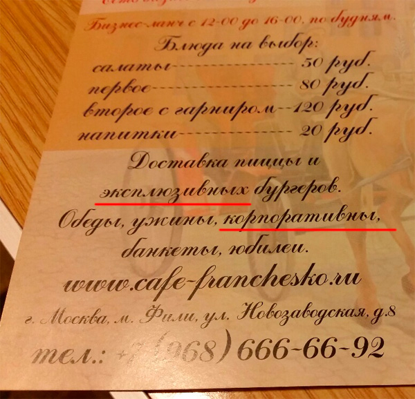 А тут зато написано красиво, радуется Максим. Хотя зря они, конечно, плюют в бургеры - Корпоративна будет недовольна.