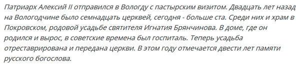 Странно, считает Игорь. Раньше патриарх куда-то отправлялся с пастырскими визитами - ну вот, например.