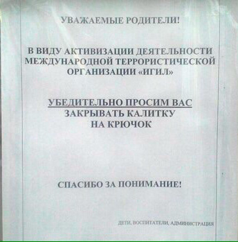 Самое смешное, что когда пару месяцев назад появилась эта фотография, про крючок, игил и калитку, я думал, что это стеб работников детского сада. Пока не сходил в садик.