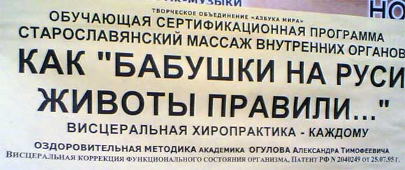 Taxman рекомендует всем, кто не знает, как делается массаж внутренних органов, обратиться к академику Огулову - уж он-то вам зависцералит такую хиропрактику, что дай бог каждому.