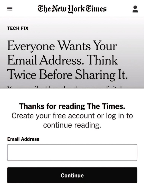 Издание The New York Times, рассказал Сергей, предупреждает о том, что все хотят заполучить твой e-mail, так что подумай сто раз, прежде чем им делиться. Ну, и конечно, отправь свой e-mail им, чтобы он не достался абы кому!