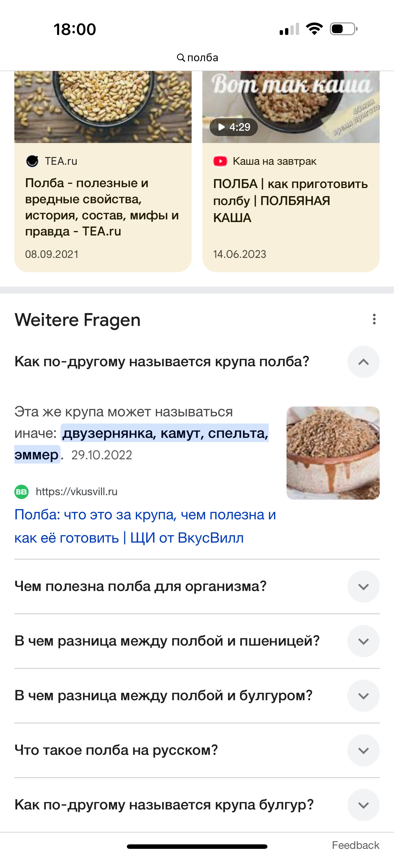 А полба-это Dinkel по-русски. Хлеб, небось, уже покупали (или булочки)?
