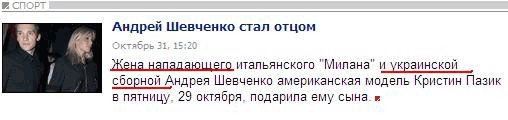 Виталий Кульбаченко напомнил старый анекдот: "Милый, я тебе изменила только два раза: с футбольной командой и с симфоническим оркестром". Это о ней, тетке по имени Андрея Шевченко (красивое имя), жене украинской сборной и почему-то одного нападающего "Милана". За что итальянцам такие ограничения - не понятно...