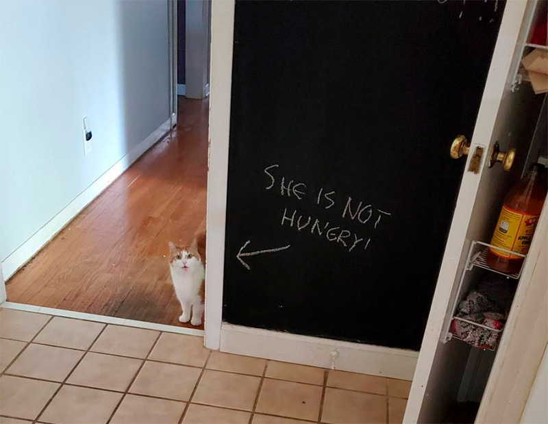 Надпись на стене "Она не голодна". Кот Бублик считает, что это низко.