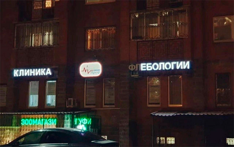 Сдаётся мне, это байка. На днях специально там походил, не нашёл там такой рекламы. Так бы сфотал.