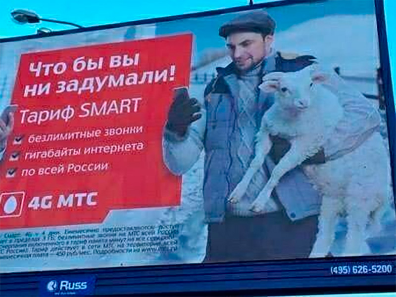 По-моему, пугается Олег, этот мужчина задумал сделать с овечкой что-то не очень хорошее. И не очень понятно, почему МТС решил ему в этом помочь.