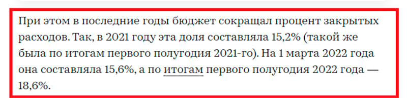 В "РБК", рассказал Алексей, процент закрытых расходов бюджета сократился с 15,6% до 18,6%. Ну да, отрицательное сокращение, мы знаем.