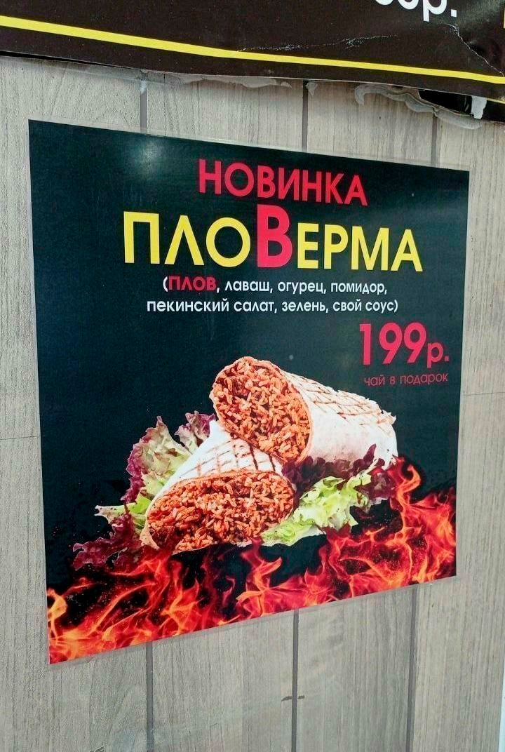 Гена Крокодил радует нас новым изобретением отечественных шаурмастроителей - пловерма. Вот борщермы мы вряд ли дождемся, а кашерма, котлерма и люля-кеверма совершенно точно на подходе!