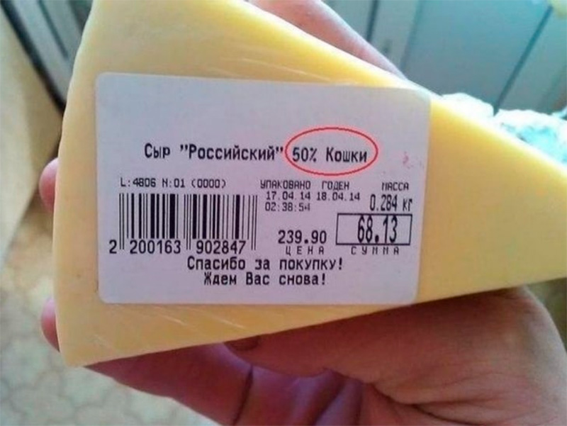 Новости импортозамещения - натуральный сыр из 50-процентной кошки. Прям какое-то новое слово в производстве продуктов питания.
