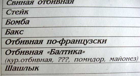 Илья прислал интереснейшее меню одного из крымских ресторанов.