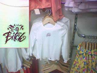 Brat - это нормально. "Избалованый ребенок", обычно девочка. Есть популярная серия кукол - Brats и мультики про них. А вот Bitch - это, конечно, круто для детской одежды.