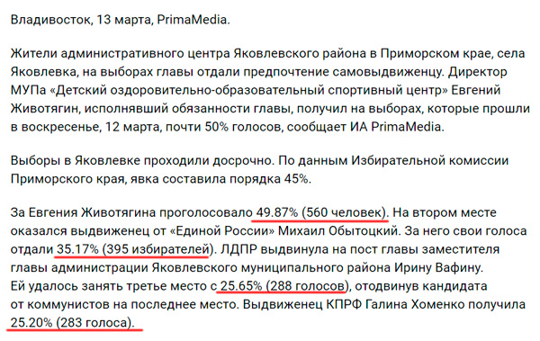 Если внимательно посчитать сумму процентов всех голосов, замечает Денис, то получится 135,89%. То есть до традиционных российских 146% голосов - слегка не дотянули.