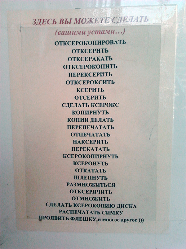 Вот это и называется - широчайший спектр услуг, считает Аким. А "ксерокопия диска" - это красиво.