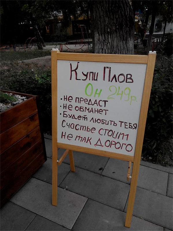 Тео прислал интересный креатив. Мы с котом Бубликом сразу же задумались по поводу того, каким образом плов будет нас любить. И станет ли это чувство взаимным.