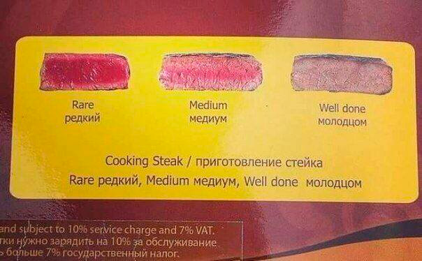В картинке со стейком мне больше понравилось: "Зарядить на 10% за обслуживание" 😄 Терминология явно знающих людей 😄
