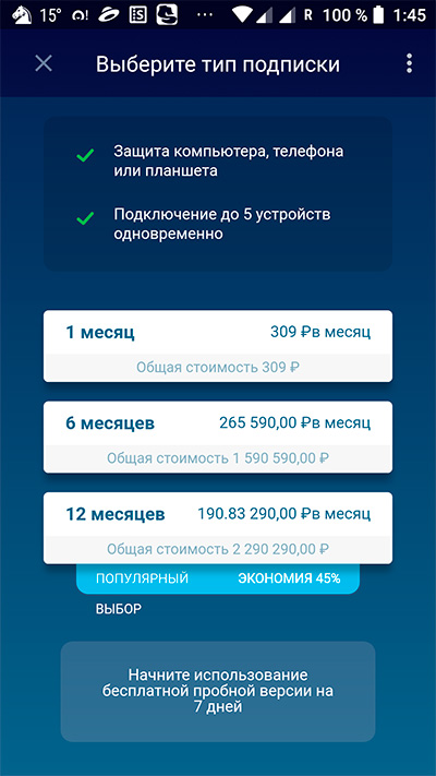 Avast для Android, рассказал Евгений, делает предложение, от которого сложно отказаться. Надо сразу на 12 месяцев брать, там экономия 45%.