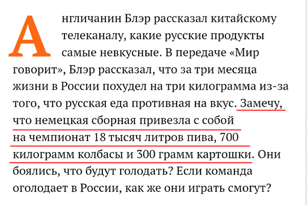 Алексей попытался представить, как несчастные немцы всей командой уминают 300 граммов картошки, запивая это 18 тысячами литров пива...