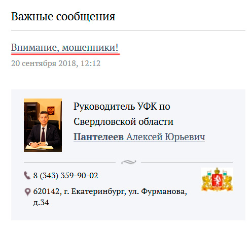 Ой палят своего начальника на официальном сайте УФК по Свердловской области, ой палят, удивляется Алексей.