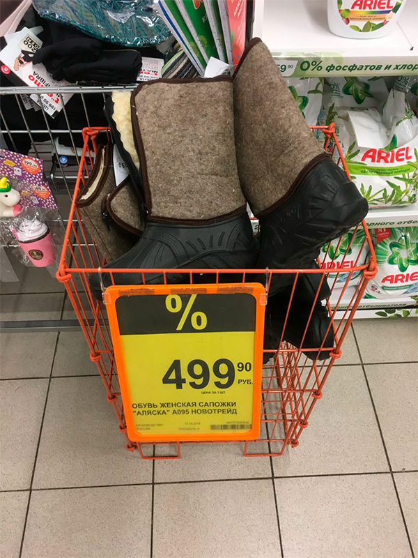 Но зато когда отлично выспишься на гречишной подушке, с утреца можно прикупить элегантные женские сапожки. И там еще приписка очень прикольная: "Цена за 1 шт.".