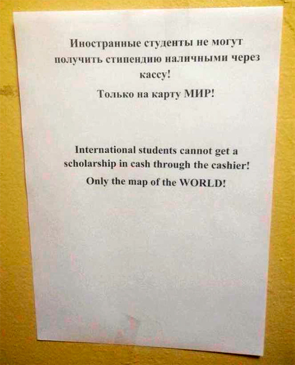А тут тоже весело, считает Демид. Англоговорящие студенты будут долго в репе чесать и думать, что им делать с картой мира и как она заменит им стипендию.