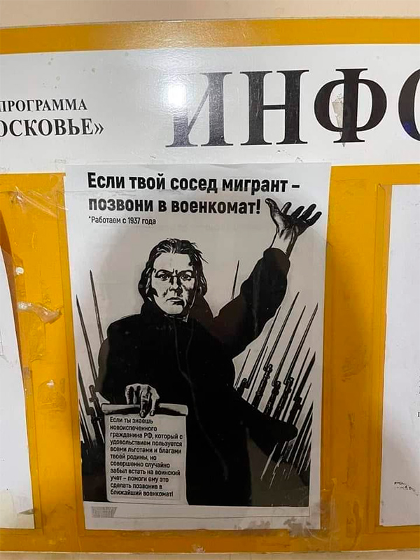 А на листовке про мигрантов и военкомат не так просто написано "Работаем с 1937 года".