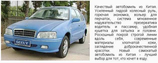 Китайский автомобиль - очередной шедевр. Диву даёшься, насколлько неисчерпаема тема машинных переводов.