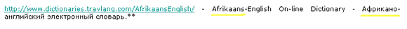 Yana рекомендует ознакомиться с африкано-английским словарем.