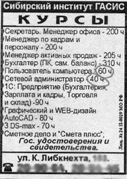 Классно, да? Секретарь - 200 часов. Пользователь компьютера - 60 часов. Сетевой администратор - 40 часов. Теперь я понимаю, почему в подавляющем большинстве контор сетевой администратор по уровню знаний не дотягивает даже до пользователя. Видать, в ГАСИС курсы заканчивал...