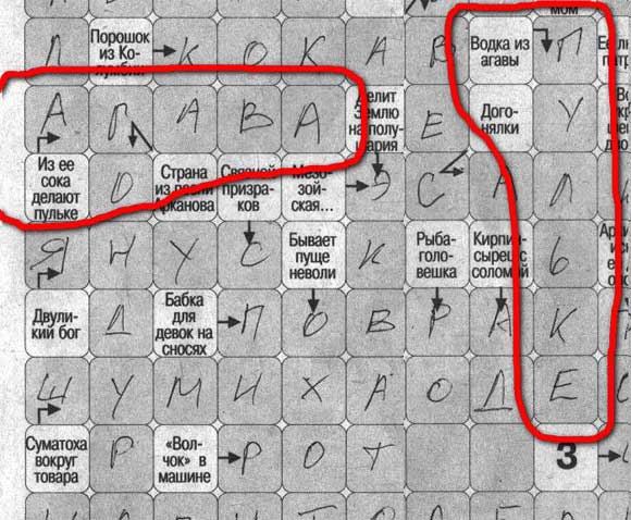 Там все нормально, сканворд реальный. Обрезку делал я сам, чтобы вместить обе стороны в иллюстрацию по ширине.
