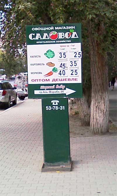 В городе Костанай, рассказал Денис, цены на основную овощную валюту меняются так часто, что приходится устанавливать специальное табло: