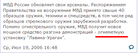 Ну а уж демонстрантам, добавляет MoGol, следует бояться по полной программе. Вы посмотрите, какое эффективное средство разгона демонстраций получили в МВД...