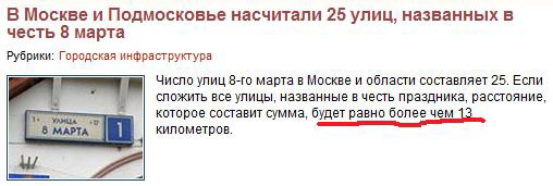 Я не понял, в чем хохма про улицы 8-го марта. Написано немного кривовато, да, но все там понятно и осмысленно.