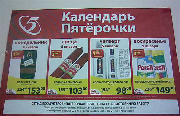 в календаре пятерочки про водку, хоть и не баннизм, но все же.