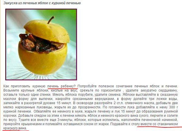 Рецепты в Интернете, вздыхает Иван, радуют все больше и больше. Теперь хоть понятно, как подавать ребенку куриную печень. И хорошо еще, что со стаканчиком вина, а не с бутылкой водки - с них станется.