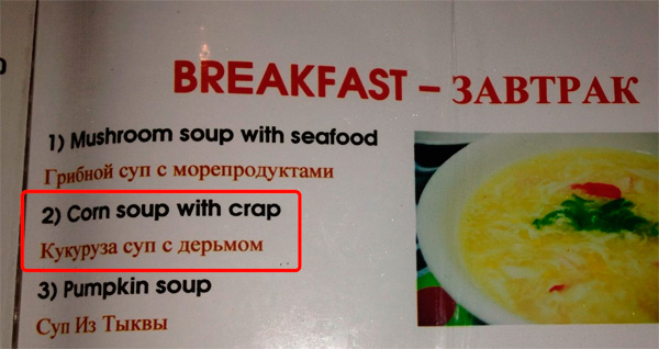 А суп с дерьмом — он с чем на самом деле? Или в английском тоже с ошибкой написано?
